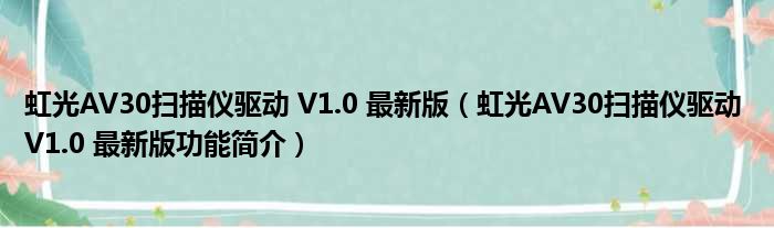 导读 大家好,关于虹光AV30扫描仪驱动 V1 0 最新版,虹光AV30扫描仪驱动 V1 0 最新版功能简介这个很多人还不知道,小勒来为大家解答以上的问题