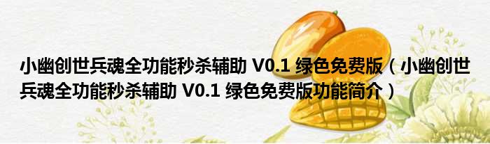 小幽创世兵魂全功能秒杀辅助 V0.1 绿色免费版(小幽创世兵魂全功能秒杀辅助 V0.1 绿色免费版功能简介)