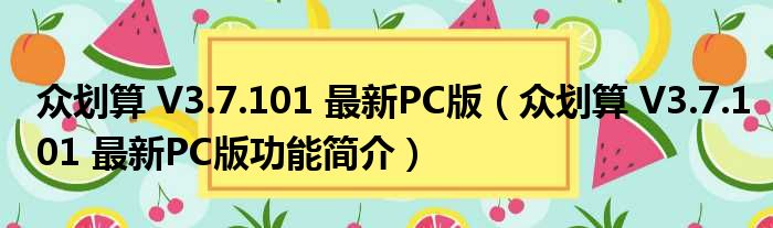 众划算 V3.7.101 最新PC版(众划算 V3.7.101 最新PC版功能简介)