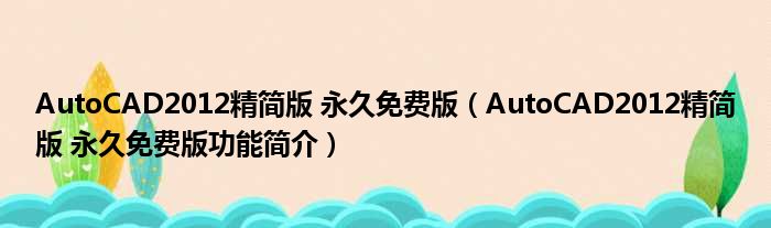 AutoCAD2012精简版 永久免费版(AutoCAD2012精简版 永久免费版功能简介)