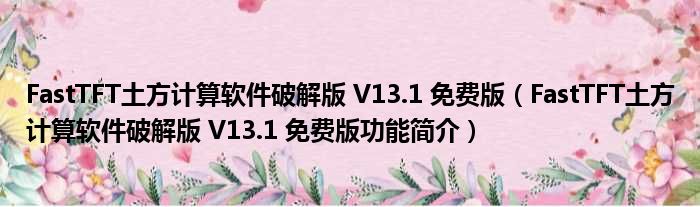 FastTFT土方计算软件破解版 V13.1 免费版(FastTFT土方计算软件破解版 V13.1 免费版功能简介)