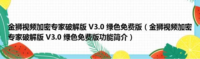 金狮视频加密专家破解版 V3.0 绿色免费版(金狮视频加密专家破解版 V3.0 绿色免费版功能简介)