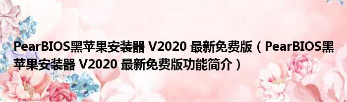 PearBIOS黑苹果安装器 V2020 最新免费版(PearBIOS黑苹果安装器 V2020 最新免费版功能简介)