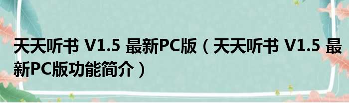 导读 大家好,关于天天听书 V1 5 最新PC版,天天听书 V1 5 最新PC版功能简介这个很多人还不知道,小勒来为大家解答以上的问题,现在让我们一起