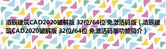 浩辰建筑CAD2020破解版 32位/64位 免激活码版(浩辰建筑CAD2020破解版 32位/64位 免激活码版功能简介)