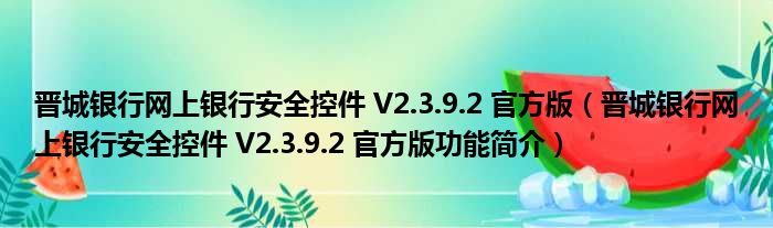 晋城银行网上银行安全控件 V2.3.9.2 官方版(晋城银行网上银行安全控件 V2.3.9.2 官方版功能简介)