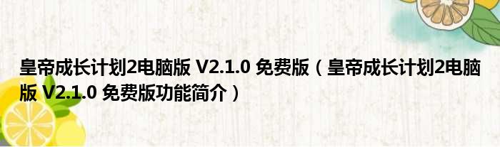 皇帝成长计划2电脑版 V2.1.0 免费版(皇帝成长计划2电脑版 V2.1.0 免费版功能简介)
