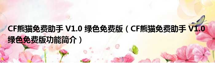 CF熊猫免费助手 V1.0 绿色免费版(CF熊猫免费助手 V1.0 绿色免费版功能简介)