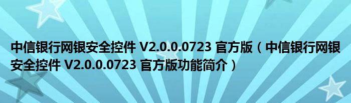 中信银行网银安全控件 V2.0.0.0723 官方版(中信银行网银安全控件 V2.0.0.0723 官方版功能简介)