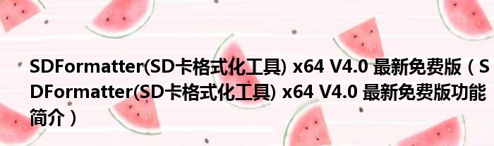 SDFormatter(SD卡格式化工具) x64 V4.0 最新免费版(SDFormatter(SD卡格式化工具) x64 V4.0 最新免费版功能简介)