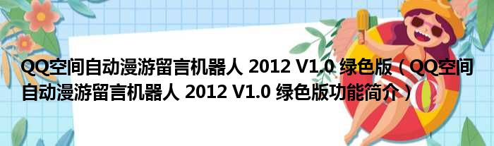 导读 大家好,关于QQ空间自动漫游留言机器人 2012 V1 0 绿色版,QQ空间自动漫游留言机器人 2012 V1 0 绿色版功能简介这个很多人还不知道,小