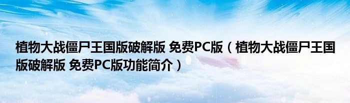 植物大战僵尸王国版破解版 免费PC版(植物大战僵尸王国版破解版 免费PC版功能简介)