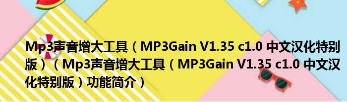 Mp3声音增大工具(MP3Gain V1.35 c1.0 中文汉化特别版)(Mp3声音增大工具(MP3Gain V1.35 c1.0 中文汉化特别版)功能简介)
