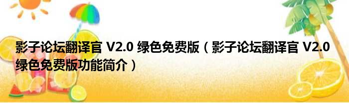 导读 大家好,关于影子论坛翻译官 V2 0 绿色免费版,影子论坛翻译官 V2 0 绿色免费版功能简介这个很多人还不知道,小勒来为大家解答以上的问题