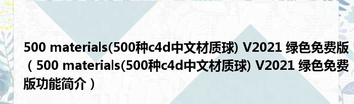 500 materials(500种c4d中文材质球) V2021 绿色免费版(500 materials(500种c4d中文材质球) V2021 绿色免费版功能简介)
