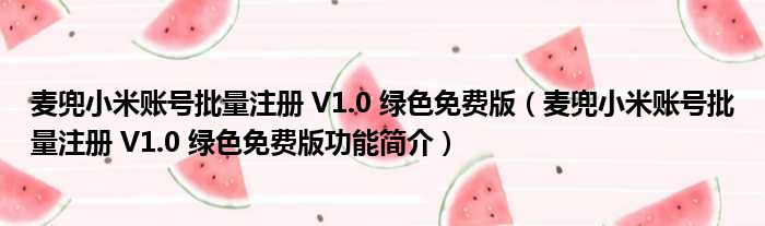 麦兜小米账号批量注册 V1.0 绿色免费版(麦兜小米账号批量注册 V1.0 绿色免费版功能简介)