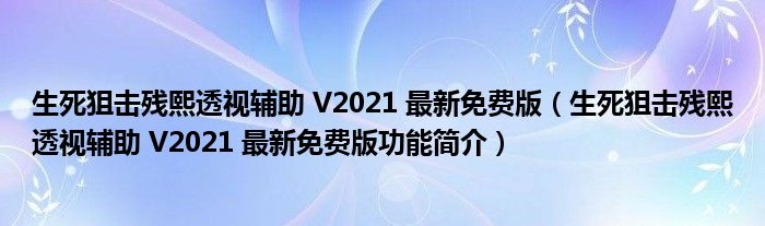 导读 大家好,关于生死狙击残熙透视辅助 V2021 最新免费版,生死狙击残熙透视辅助 V2021 最新免费版功能简介这个很多人还不知道,小勒来为大家