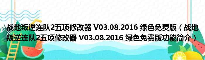 战地叛逆连队2五项修改器 V03.08.2016 绿色免费版(战地叛逆连队2五项修改器 V03.08.2016 绿色免费版功能简介)