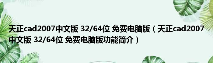 天正cad2007中文版 32/64位 免费电脑版(天正cad2007中文版 32/64位 免费电脑版功能简介)
