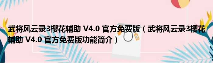 武将风云录3樱花辅助 V4.0 官方免费版(武将风云录3樱花辅助 V4.0 官方免费版功能简介)