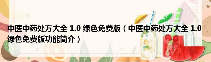 中医中药处方大全 1.0 绿色免费版(中医中药处方大全 1.0 绿色免费版功能简介)