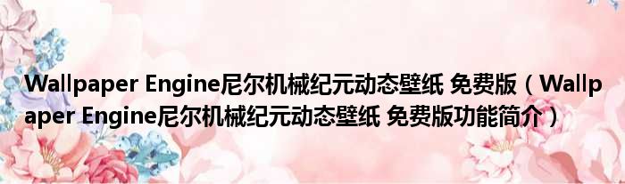 导读 大家好,关于Wallpaper Engine尼尔机械纪元动态壁纸 免费版,Wallpaper Engine尼尔机械纪元动态壁纸 免费版功能简介这个很多人还不知道,
