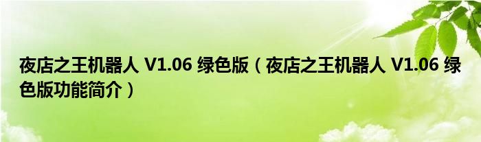 夜店之王机器人 V1.06 绿色版(夜店之王机器人 V1.06 绿色版功能简介)