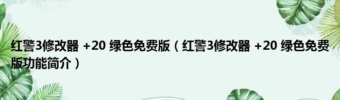 红警3修改器 +20 绿色免费版(红警3修改器 +20 绿色免费版功能简介)