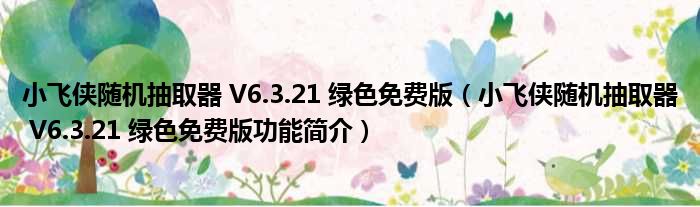 导读 大家好,关于小飞侠随机抽取器 V6 3 21 绿色免费版,小飞侠随机抽取器 V6 3 21 绿色免费版功能简介这个很多人还不知道,小勒来为大家解答