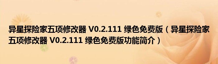 导读 大家好,关于异星探险家五项修改器 V0 2 111 绿色免费版,异星探险家五项修改器 V0 2 111 绿色免费版功能简介这个很多人还不知道,小勒来