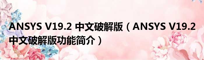 ANSYS V19.2 中文破解版(ANSYS V19.2 中文破解版功能简介)