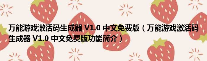 万能游戏激活码生成器 V1.0 中文免费版(万能游戏激活码生成器 V1.0 中文免费版功能简介)
