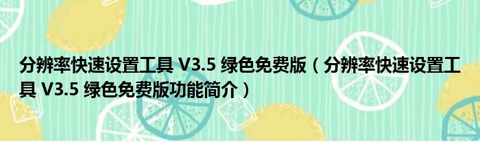 导读 大家好,关于分辨率快速设置工具 V3 5 绿色免费版,分辨率快速设置工具 V3 5 绿色免费版功能简介这个很多人还不知道,小勒来为大家解答以