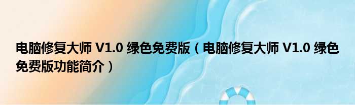 电脑修复大师 V1.0 绿色免费版(电脑修复大师 V1.0 绿色免费版功能简介)