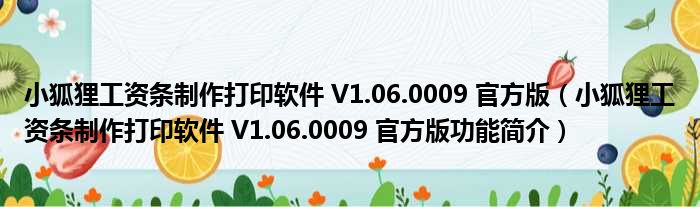 小狐狸工资条制作打印软件 V1.06.0009 官方版(小狐狸工资条制作打印软件 V1.06.0009 官方版功能简介)