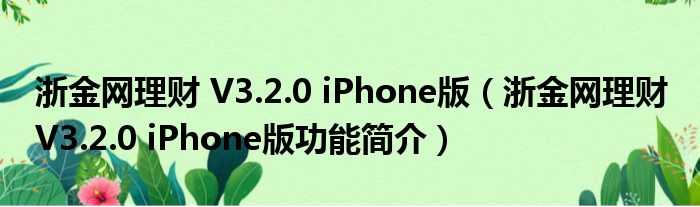 导读 大家好,关于浙金网理财 V3 2 0 iPhone版,浙金网理财 V3 2 0 iPhone版功能简介这个很多人还不知道,小勒来为大家解答以上的问题,现在让