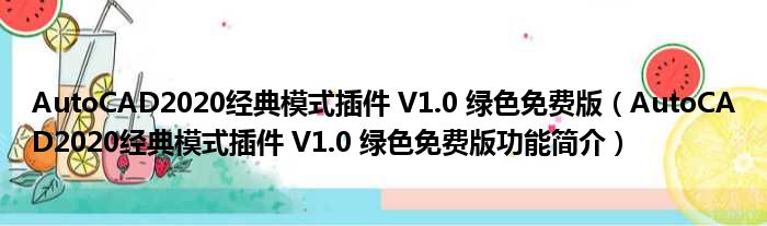 AutoCAD2020经典模式插件 V1.0 绿色免费版(AutoCAD2020经典模式插件 V1.0 绿色免费版功能简介)