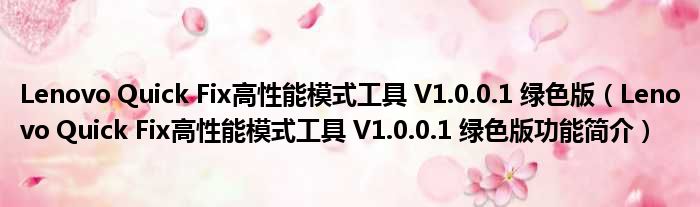 Lenovo Quick Fix高性能模式工具 V1.0.0.1 绿色版(Lenovo Quick Fix高性能模式工具 V1.0.0.1 绿色版功能简介)