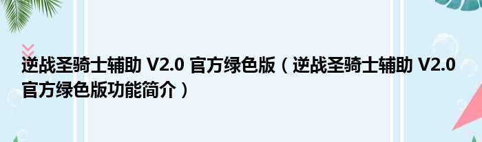 逆战圣骑士辅助 V2.0 官方绿色版(逆战圣骑士辅助 V2.0 官方绿色版功能简介)