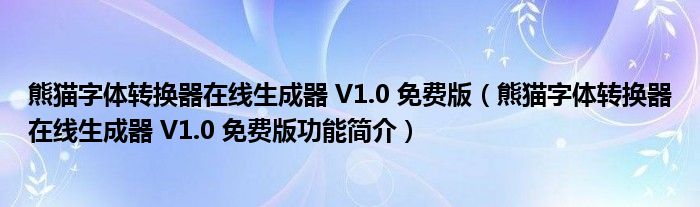 熊猫字体转换器在线生成器 V1.0 免费版(熊猫字体转换器在线生成器 V1.0 免费版功能简介)