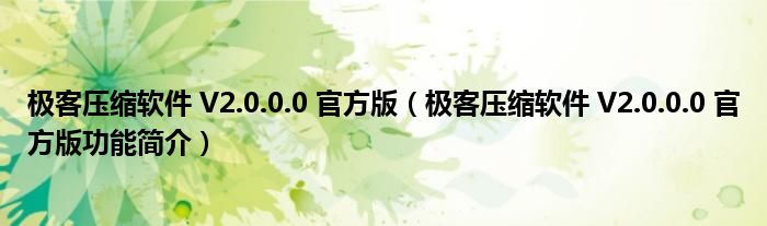 极客压缩软件 V2.0.0.0 官方版(极客压缩软件 V2.0.0.0 官方版功能简介)