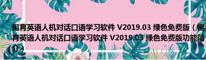 导读 大家好,关于锡育英语人机对话口语学习软件 V2019 03 绿色免费版,锡育英语人机对话口语学习软件 V2019 03 绿色免费版功能简介这个很多