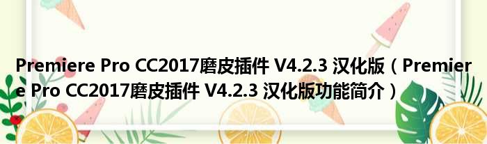 Premiere Pro CC2017磨皮插件 V4.2.3 汉化版(Premiere Pro CC2017磨皮插件 V4.2.3 汉化版功能简介)
