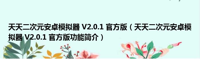 导读 大家好,关于天天二次元安卓模拟器 V2 0 1 官方版,天天二次元安卓模拟器 V2 0 1 官方版功能简介这个很多人还不知道,小勒来为大家解答以