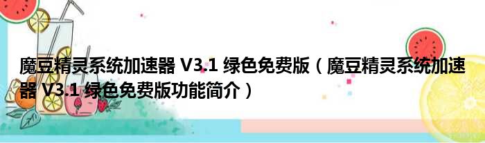 魔豆精灵系统加速器 V3.1 绿色免费版(魔豆精灵系统加速器 V3.1 绿色免费版功能简介)