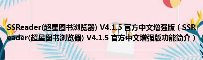 SSReader(超星图书浏览器) V4.1.5 官方中文增强版(SSReader(超星图书浏览器) V4.1.5 官方中文增强版功能简介)