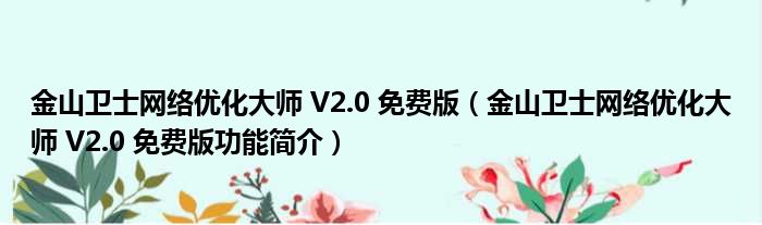 金山卫士网络优化大师 V2.0 免费版(金山卫士网络优化大师 V2.0 免费版功能简介)