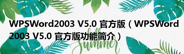 WPSWord2003 V5.0 官方版(WPSWord2003 V5.0 官方版功能简介)