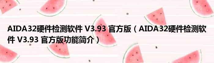 AIDA32硬件检测软件 V3.93 官方版(AIDA32硬件检测软件 V3.93 官方版功能简介)