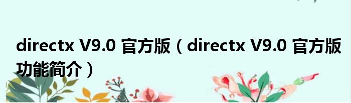 directx V9.0 官方版(directx V9.0 官方版功能简介)